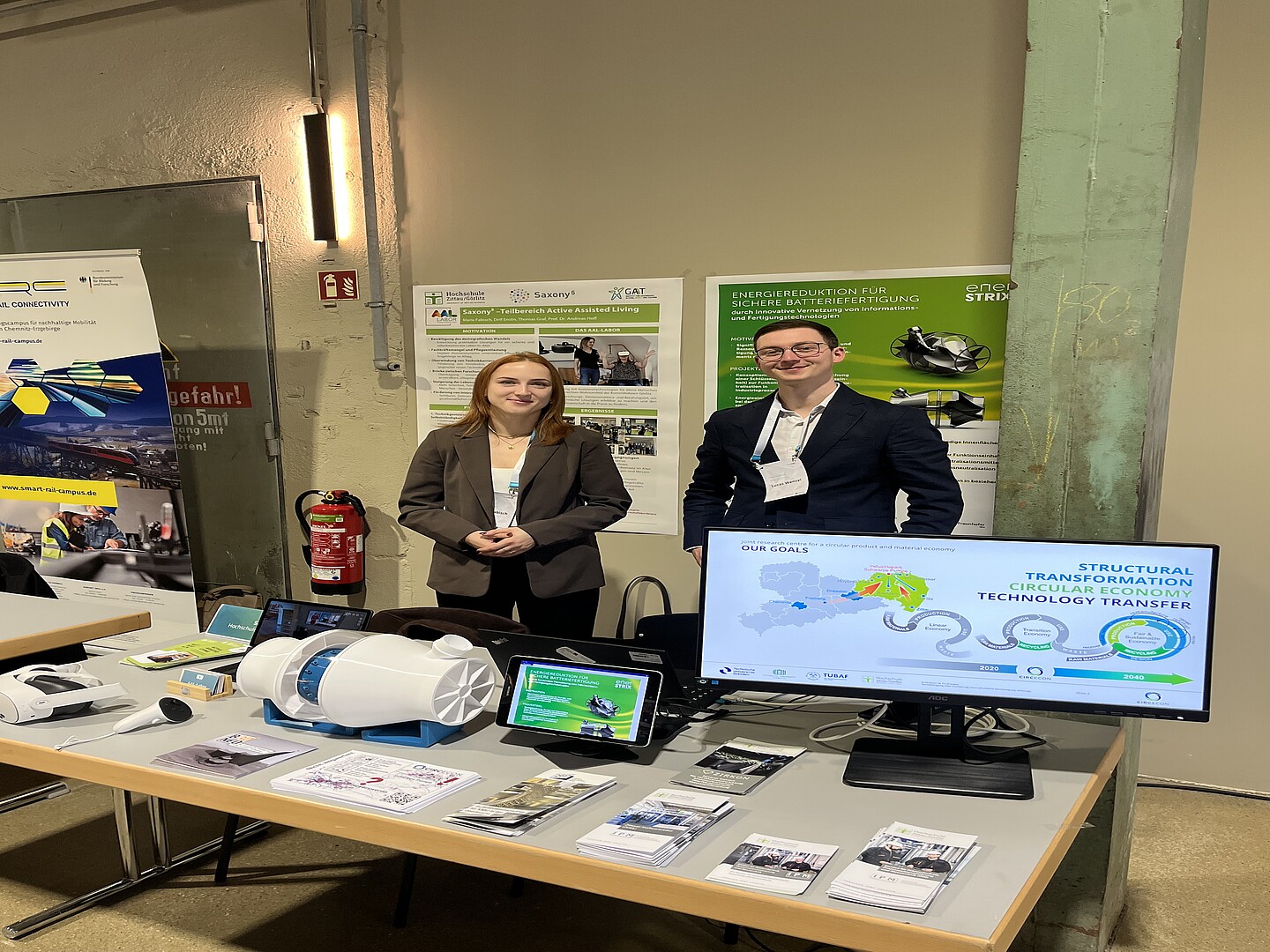 At the university's booth, a vivid demonstration was given of how technological innovations can be designed for older people so that they have intuitive and self-determined access to digitalization despite possible barriers. In addition, several current research and transfer projects were presented, including the AAL laboratory and the Transfraum CELSIUZ, which could be explored virtually with the help of a virtual reality application. This gave visitors the opportunity to experience the premises immersively and gain a comprehensive picture of how they work and their areas of application. The EnerSTRIX demonstrator was also on display – a 3D-printed functional and filter unit that extinguishes sparks, reduces harmful gases, saves energy, collects live data, and was developed for use in battery production. In addition, further insights were provided into the research activities of the Institute for Process Engineering, Process Automation and Measurement Technology (IPM) and the Center for Innovation, Law and Conversion (ZIRKON).